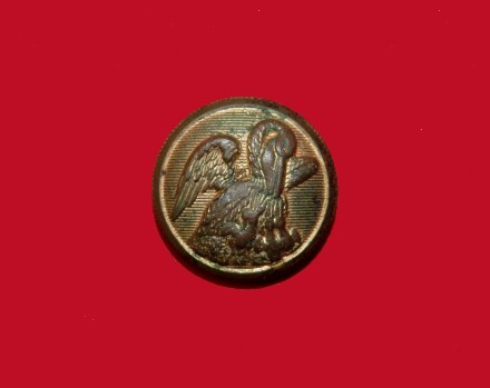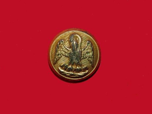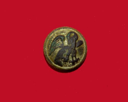 226. Beautiful condition, excavated, coat size, "Droop Wing Eagle" Confederate Staff Officer's button.  This button was recovered many years ago from a Confederate camp near Chickamauga, Georgia.  It was recovered by Dr. Francis Fesmire from a Confederate position on private property near Chickamauga, Georgia.  The reverse has the single depressed channel and remnants of what was once the iron attaching loop.  It is very difficult to dig a prettier Confederate local "Droop Wing Staff" than this one.--$1,250.