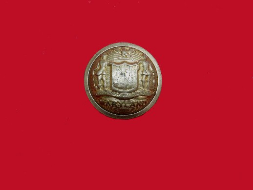 53. Quite rare and in excellent condition, coat size, non-excavated, Maryland State Seal uniform button.  This button has beautiful gilting, shank intact, and a "Waterbury Scovill" backmark.  This is one that rarely comes available.--$295.