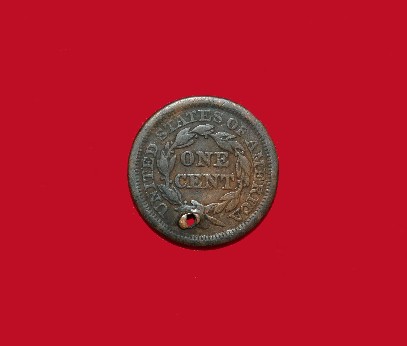 56. Very attractive, 1854 date, large cent, that according to family legend, was worn as a good luck charm by Richard Vernon, 24th Tennessee Infantry.  Many years ago, I purchased from the family a UCV coat that belonged to him.--$25.