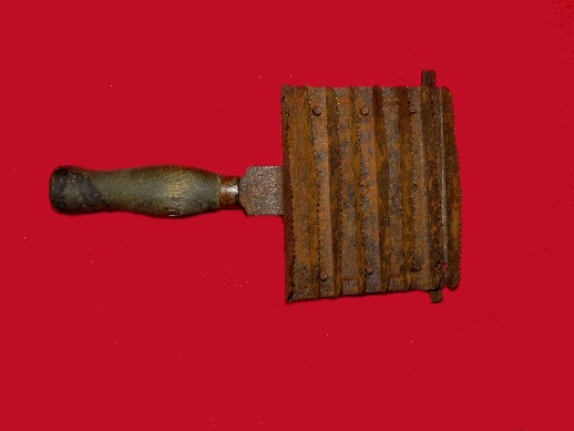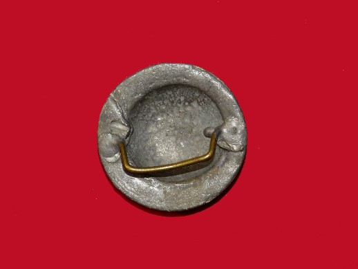 70. Excellent condition, non-excavated, 1840 - 1860 era, original grease lamp.  The way these work is that the spike was driven into a tree or tree limb, and a hog grease soaked rag in the holder was lit on fire.  The grease soaked rag would burn for a half hour or so providing light to the camp area.  If you had three or four of these going at once, you could light up quite an area.  Over the years, I have recovered several of these around Civil War camp sites.  This one remains in perfect condition and could be used today.--$195.