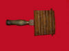 59. Original 12-pound cannonball tin attachment straps used to attach the 12-pound cannonball to the wooden sabot and powder bag.  In the early days, these were sold by Bannerman from Civil War surplus, and they were readily available.  They are actually quite rare to find now.--$95.