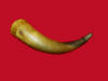 158. Very attractive condition, Civil War/Indian War Era, double twist bugle.  This bugle has a rich, aged, nearly chocolate brown patina and is out of a deep South estate.  The brass bugle mouthpiece still remains intact.  This is going to be a very nice addition to someone's artifact display.--$450.