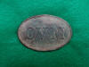 195. Beautiful excavated large size oval "VMM" (Volunteer Maine Militia) cartridge boxplate.  This plate was recovered about 40 years ago on private property near Port Hudson, LA.  The face has a slick chocolate brown patina and sharp, crisp letters and the plate has literally never even been rinsed off.  The plate is the pattern ""VMM" with very little lead in the back - Actually just barely enough to keep the wire loops in place.  Rusty residue of the wire loops still remains.  This is one of the prettiest "VMM"s from that area that I have seen.--$1,150.